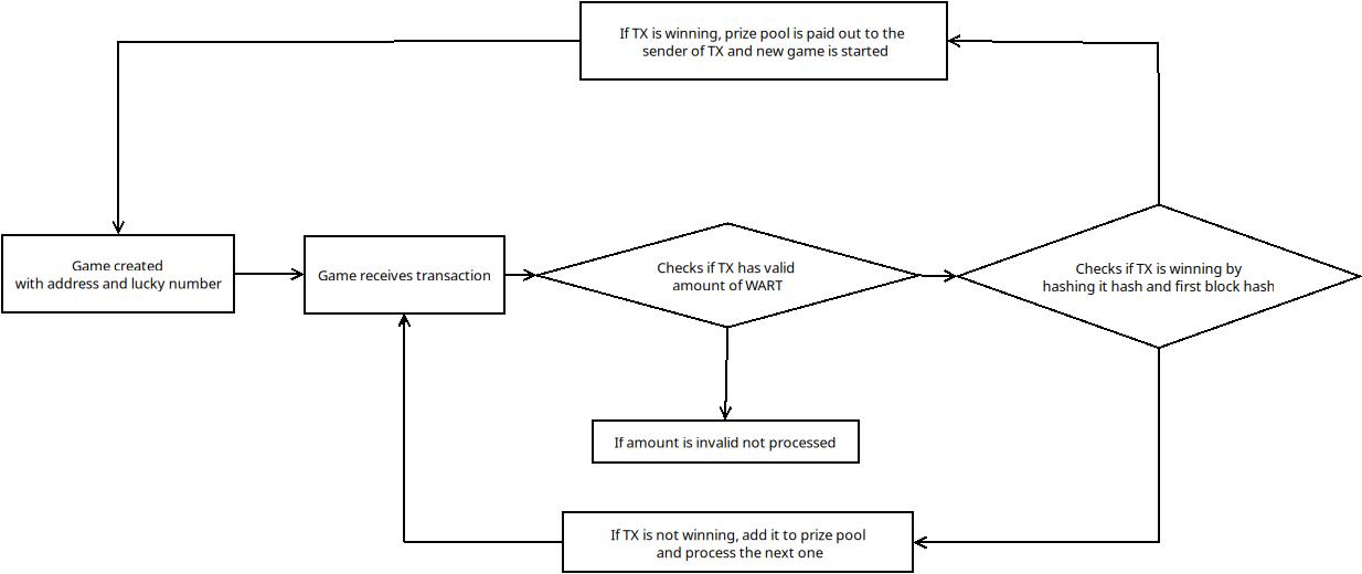 5. Winner gets paid WART from his own transaction + WART from all previous transactions minus fees.